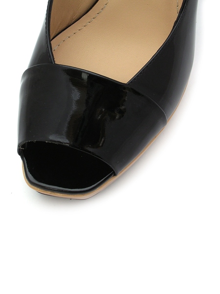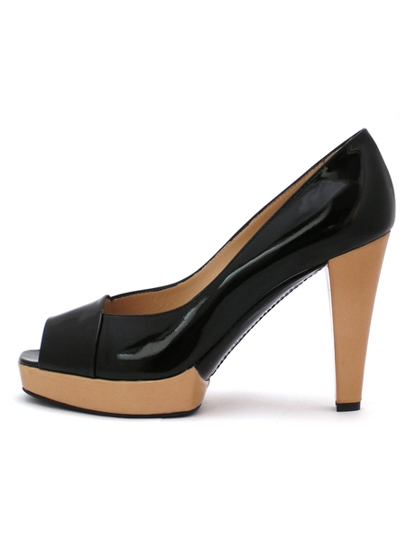 Материал: верх - натуральная лаковая кожа черного и теплого бежевого цветов, подкладка - шевро песочного цвета; низ - подошва из натуральной кожи с резиновой профилактикой. Каблук 9 см (включая 2см платформу).