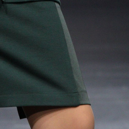 Силуэт прямой, с ассиметричными разрезами (впереди по правой ноге и сзади по левой ноге).
