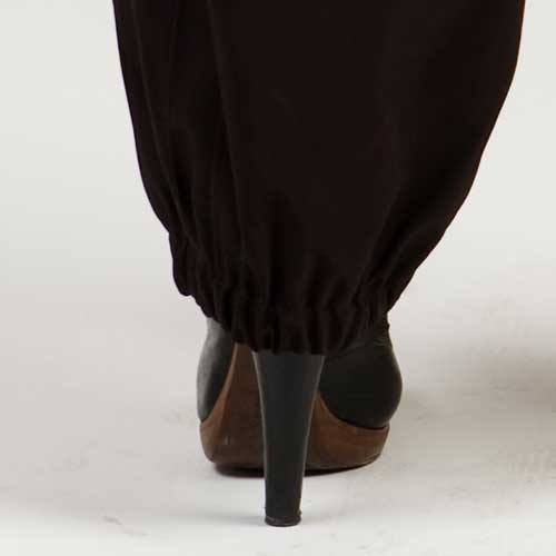 Оригинальной деталью является присобранный на резинку по типу шароваров низ брюк.