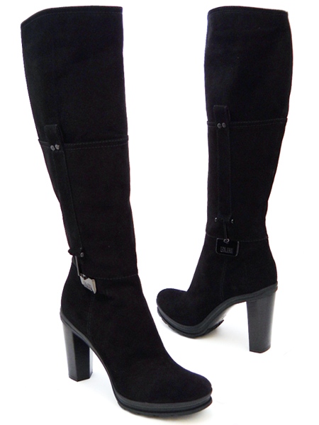 Сапоги на молнии, сбоку металлическая пряжка с логотипом марки.