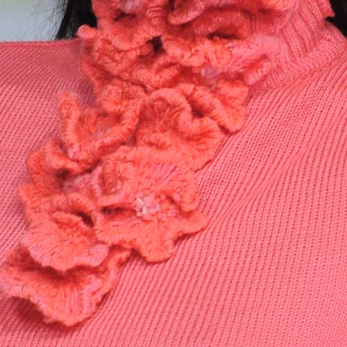 Оригинальная деталь - пышное жабо (вышитые цветы).