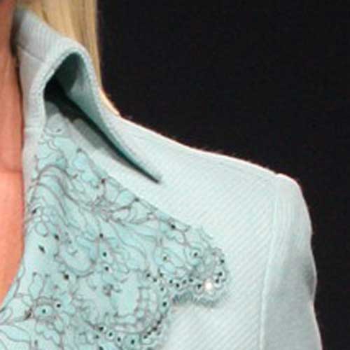 Лацканы украшены тонким французским кружевом и расшиты стеклярусом.