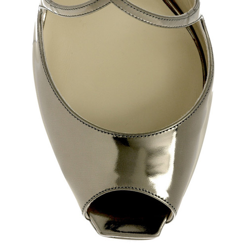 Великолепные праздничные босоножки благородного цвета темного серебра идеально подойдут к вечернему наряду любого цвета.