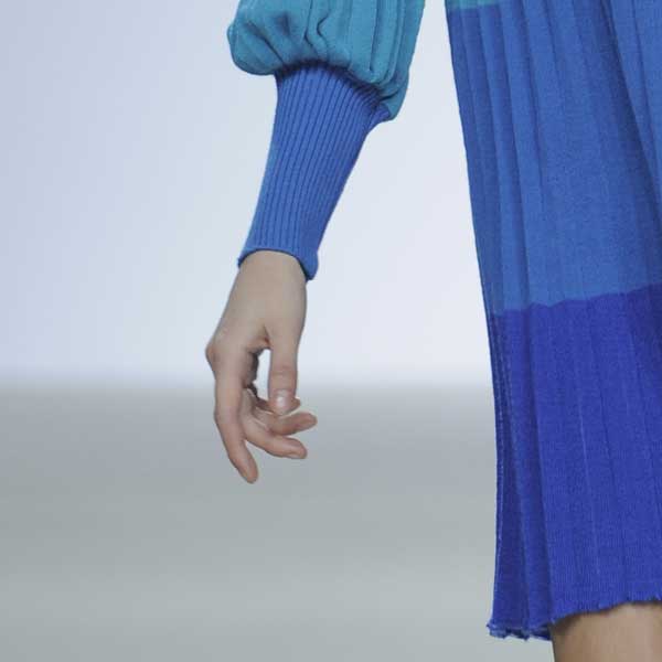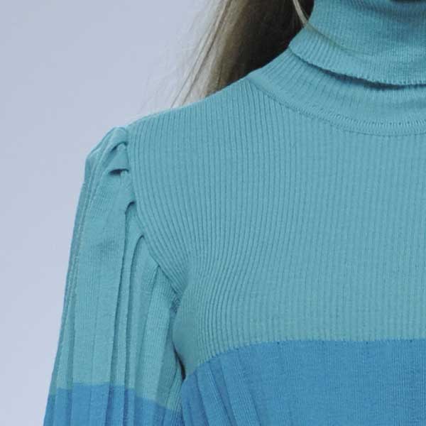 Платье с воротником-стойка, рукав с высоким манжетом.