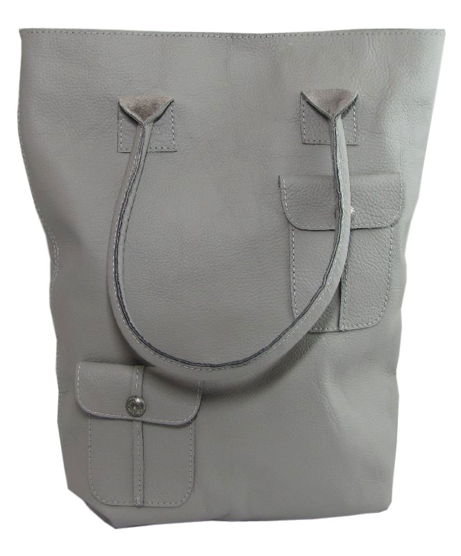 Серая сумка из натуральной кожи с кармашками от дизайнера Алены Раца .