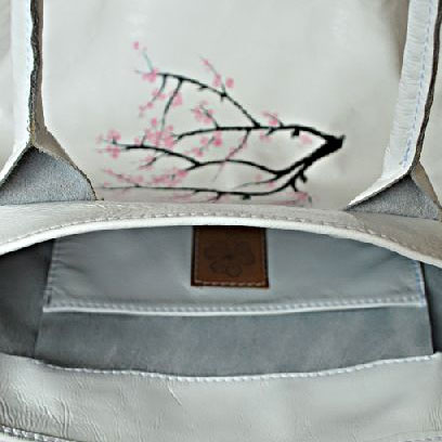 Сумка "Сакура" из белого лака с рисунком от дизайнера Алены Раца