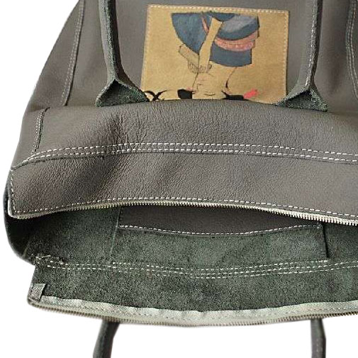 Сумка "Японка" из серой кожи с рисунком от дизайнера Алены Раца