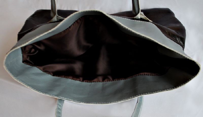 Внутри подкладка серого цвета и карман для документов размером 18х19 см.
