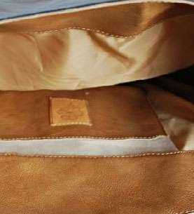 Внутри подкладка золотого цвета и карман для документов размером 18х19 см.