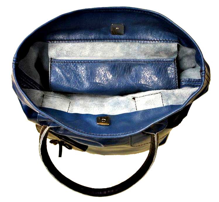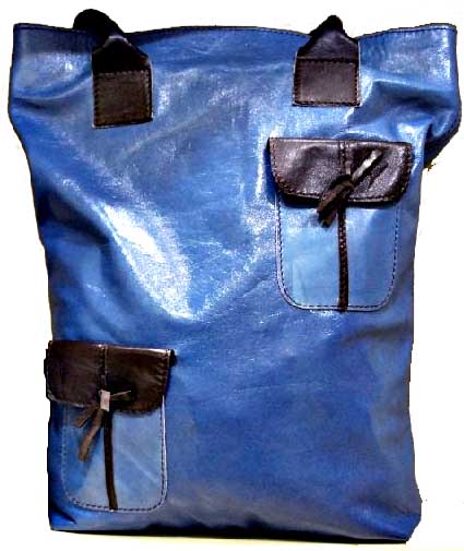 Нежно голубая сумка из натуральной кожи с коричневыми кармашками от дизайнера Алены Раца