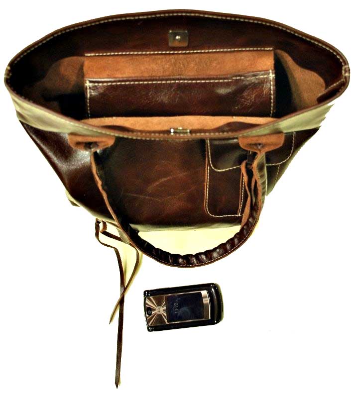 Удобная и вместительная сумка из натуральной коричнево-рыжей кожи позволит Вам не расставаться с любимыми и необходимыми вещами ни на минуту!