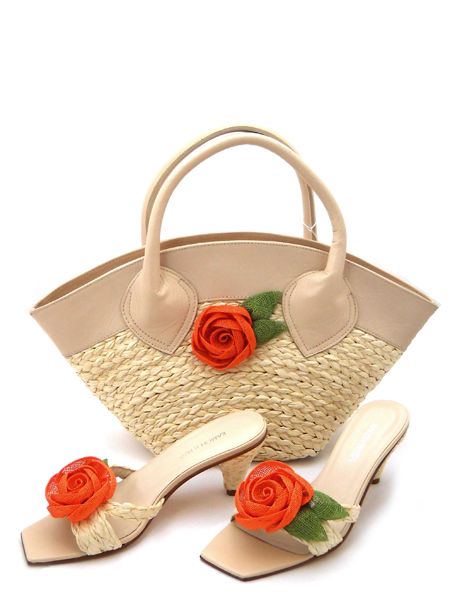 В комплект к сумке идеально подходят босоножки с цветком в испанском стиле.