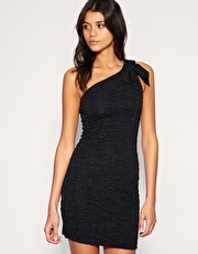 Черное облегающее платье с бантом на одном плече из весенней коллекции. В нашем каталоге вечерние платья, представлены в большом ассортименте