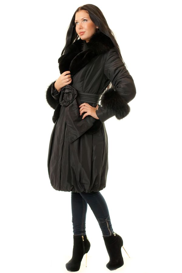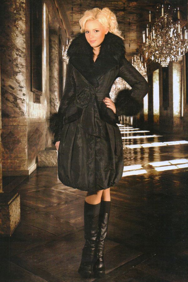 Изящное и эффектное пальто с неординарным кроем низа «баллон», который придает экстравагантность и утонченность фасону. Особый шарм модели придает эффектная отделка натуральным мехом роскошного воротника и манжет, выполненных ажурной вязкой, а также оригинальный пояс, декорированный изящным цветком. Пальто "Leyla" - модный и стильный выбор сезона осень-зима 2012-2013. Это уютное пальто не только окутает теплом в прохладный осенний день, но и подчеркнет эффектным стилем шарм и изысканность вкуса своей обладательницы.