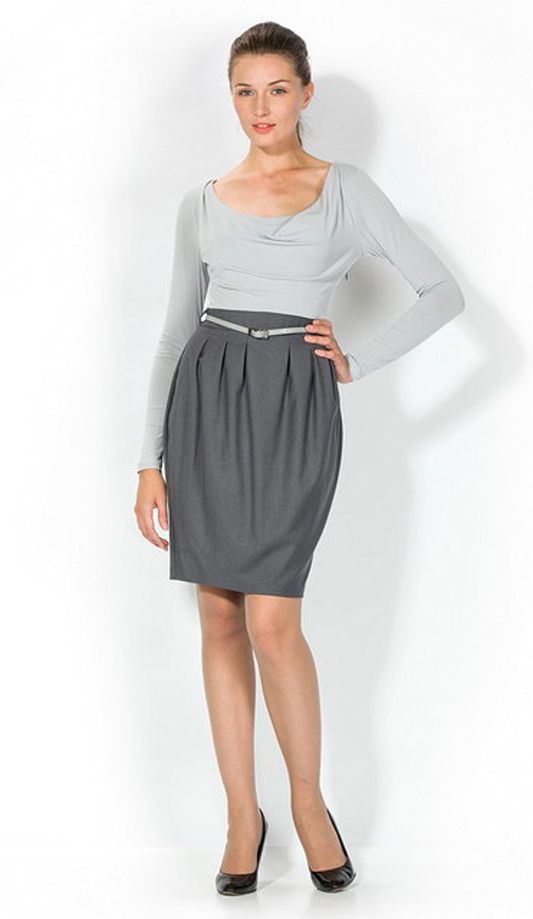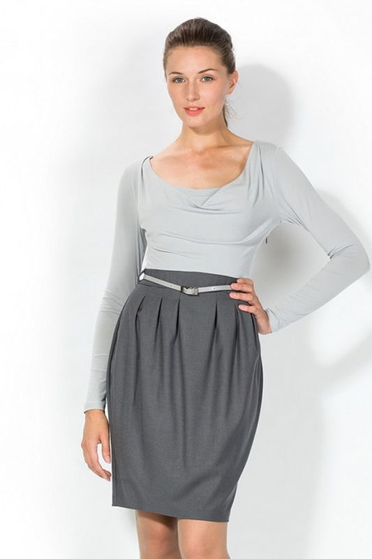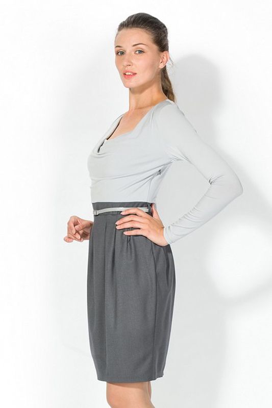Оригинальная модель платья в неординарном решении фасона: отрезной по линии таллии верх выполнен в контрастном юбке-тюльпану стиле и цвете, что создает неординарный образ изящного костюма. Яркими идеями этой очаровательной модели является эффектный вырез и аккуратные выточки вокруг всего пояса, которые создают элегантные складки на юбке. Платье настолько самодостаточно, что даже не требует особых аксессуаров и украшений, разве что, - элегантный ремешок, который подчеркнет стройность талии.