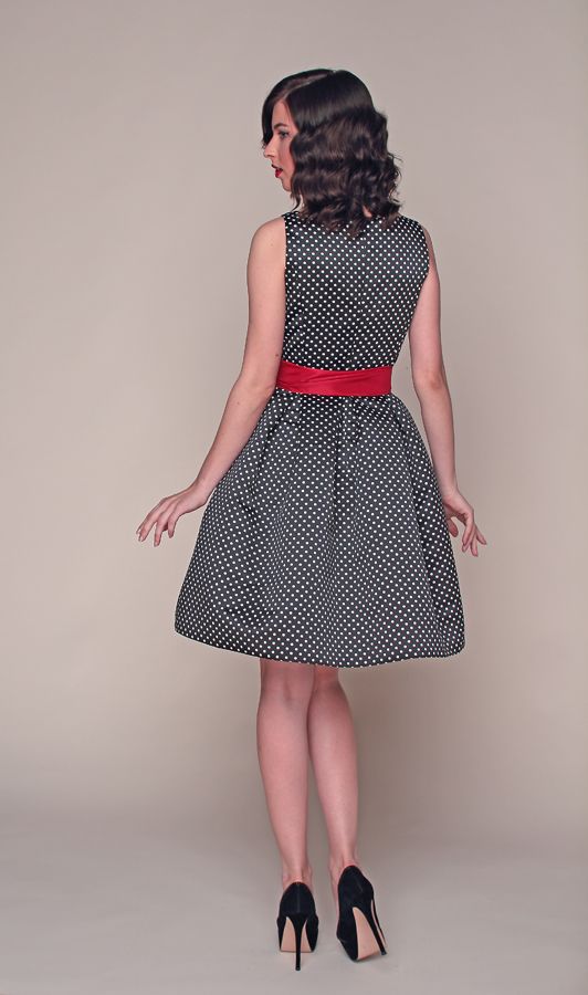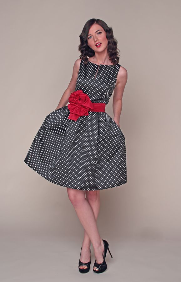 Эксклюзивная модель из коллекции Fiorese Manelli – изящное коктейльное платье с эффектным принтом в черно-белый горох, оригинальность которого подчеркивает красный пояс.