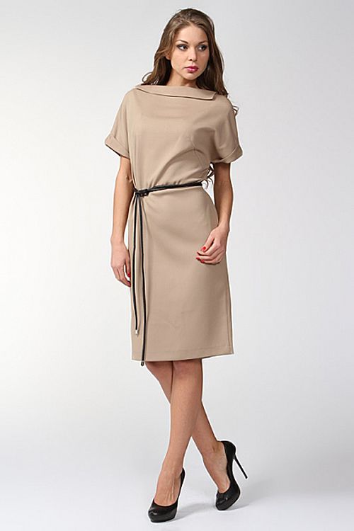 Модель из новой коллекции Виктории Андреяновой - стильное и оригинальное платье в свободном крое. Шарм и особую эксклюзивность модели придает крой рукавов с манжетами-отворотами, а также изящный вырез горловины "лодочка". Изумительный выбор, как для делового, так и повседневного гардероба.