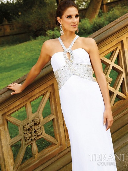 Эксклюзивная модель из новой колекции Terani - длинное платье в пол из струящегося материала, выполенное в изящном сочетании стилей "ампир" и "диско". Платье эффектно декорировано вышивкой стразами различной геометрической формы, декор использован на линии талии по всему объему модели, в отделке выреза "капелька" и на бретелях, которые изысканно скрещены на спинке. Платье станет изумительным выбором для особых презентаций, выхода на светский раут.