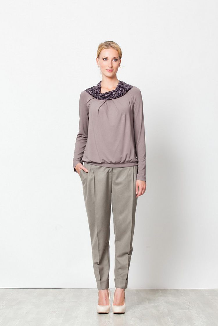 Модель из новой коллекции Лады Калининой – классические брюки прямого, чуть суженного кроя из мягкого эластичного и комфортного материала. Низ брюк отличается вырзительными широкими отворотами, спережи - стильная складка-"стрелка". Брюки составят изумительный ансамбль, как в деловом костюме, так и в повседневном гардеробе, сочетаясь со многими стилями и цветовой гаммой в одежде. Застежка - "молния". Модель представлена в цветах: черный, коричневый, серый