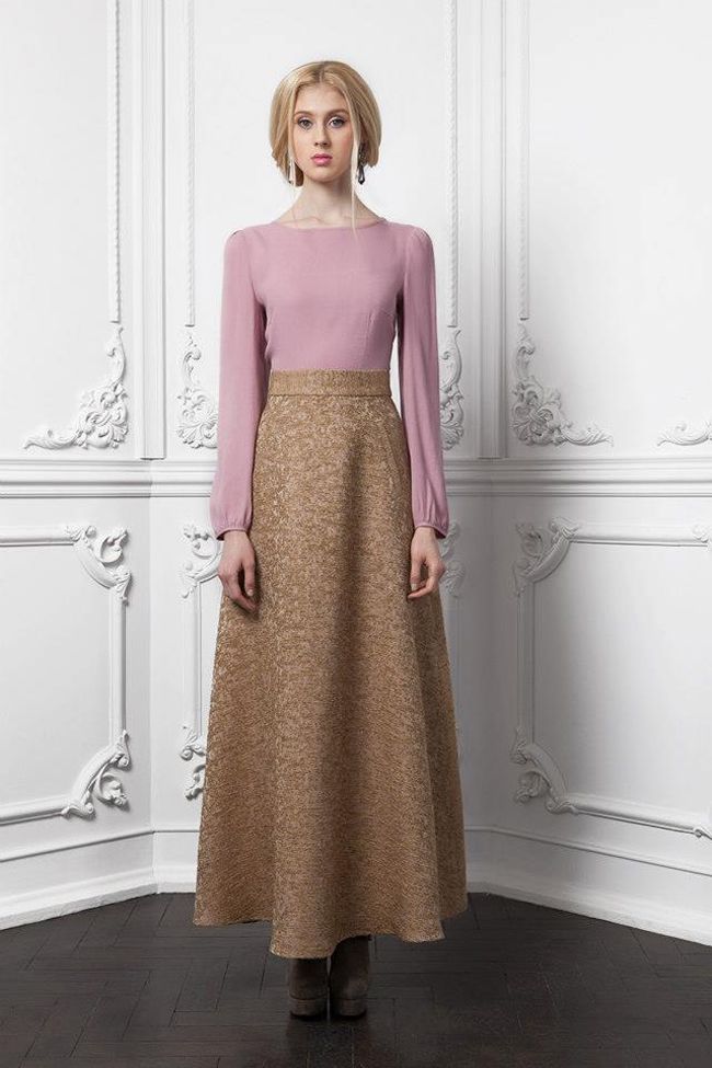 Эксклюзивная модель из новой коллекции осень-зима 2013/2014 от Хавы Арапиевой – элегантная длинная юбка, чуть расклешенная к низу. Юбка отличается эффектной фактурной тканью удивительного нежного песочного цвета. Фасон, а также цвет юбки позволит сочетать эту модель не только в ансамблях повседневного гардероба, но и с большим успехом применить в костюме для особого выхода.