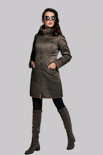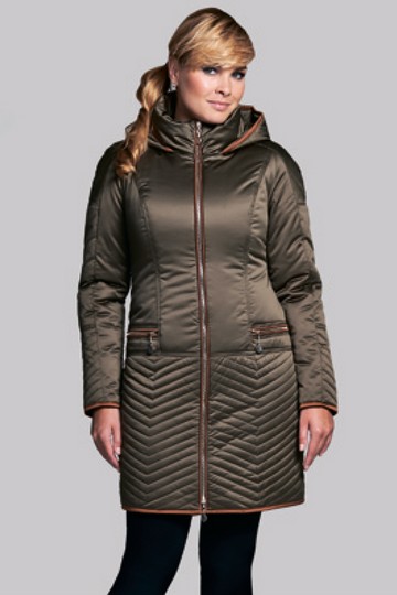 Пальто с воротникос стойкой, с капюшоном (не отстегивается). Втачные карманы на молнии.