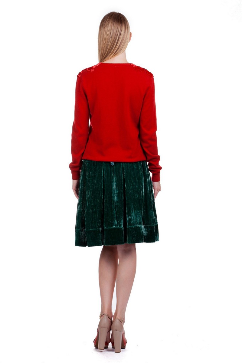 Юбка прекрасно сочетается с классическими офисными блузами, а также простыми футболками и трикотажными жакетами.