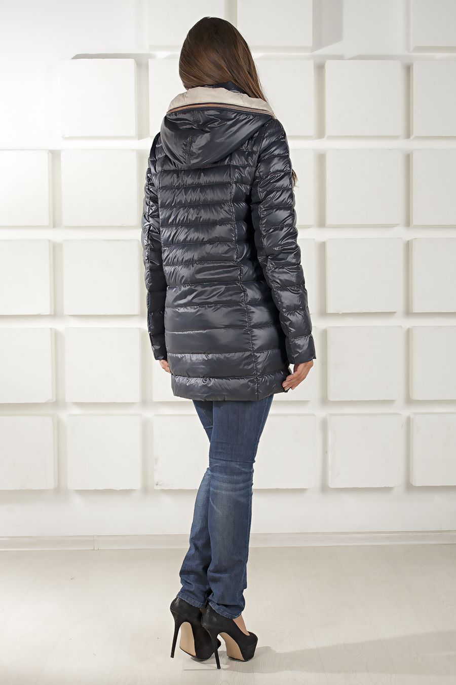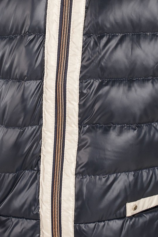 Легкая и вместе с тем комфортная теплая куртка с эффектным капюшоном, который отличается оригинальным отворотом и контрастной отделкой. Модель прямого кроя имеет выполнена в модном стеганном варианте, вертикальные боковые строчки и контрастная отделка вдоль линии застежки зрительно стройнят фигуру. Капюшон куртки не отстегивается, втачные карманы на потайной молнии.