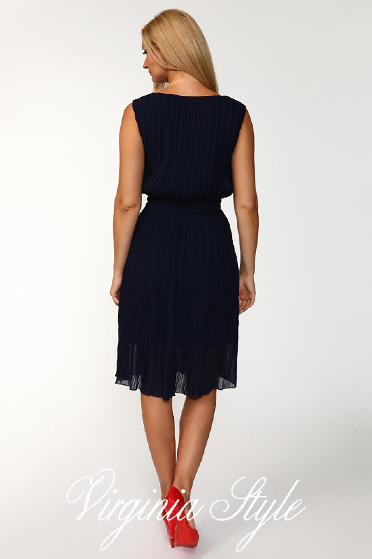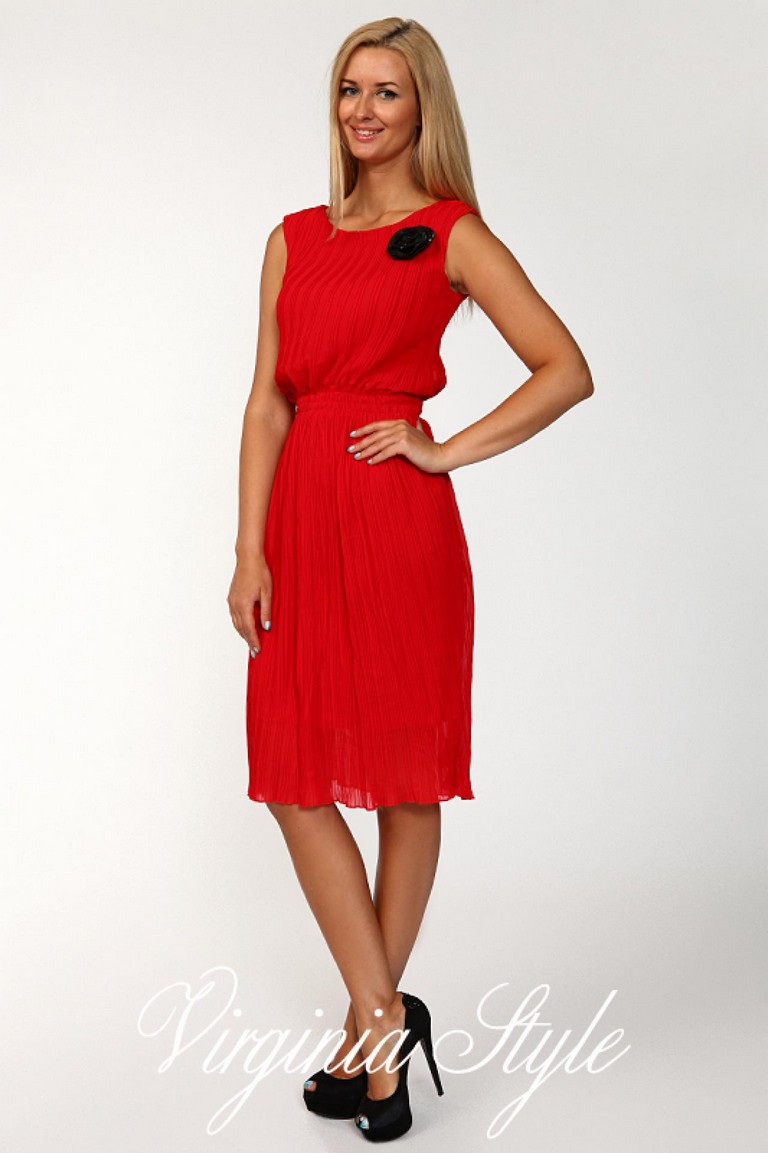 Платье полуприлегающего силуэта с вырезом горловины "лодочка". Втачной эластичный пояс, декоративный цветок.