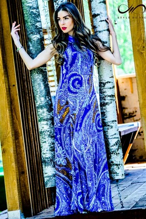 Стильное и яркое платье из плотного трикотажного полотна. Приталенное, с облегающим верхом и тяжелой ниспадающей юбкой-солнце. Эффектная деталь на спинке платья - разъемная металлическая молния.