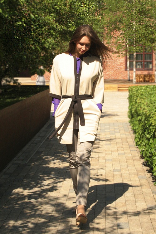 Летнее пальто-кимоно на молнии и на поясе.