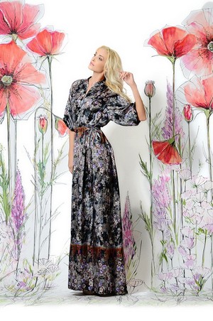 Платье шелковое длинное от модного дизайнерского бренда UONA. Стильное платье-рубашка, прекрасный вариант для вечерних прогулок