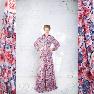 Длинное платье-рубашка с поясом и рукавами фонариками на подкладе