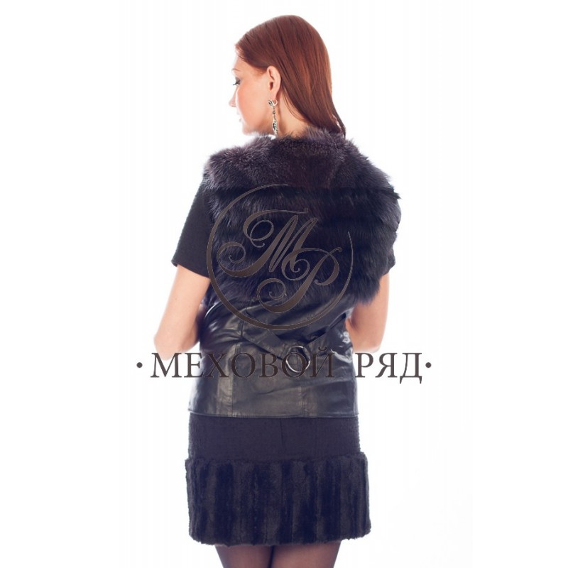 Жилет из меха енота с натуральной кожей. Яркий и вместе с тем очень практичный. Дает ощущение теплоты и удобства.