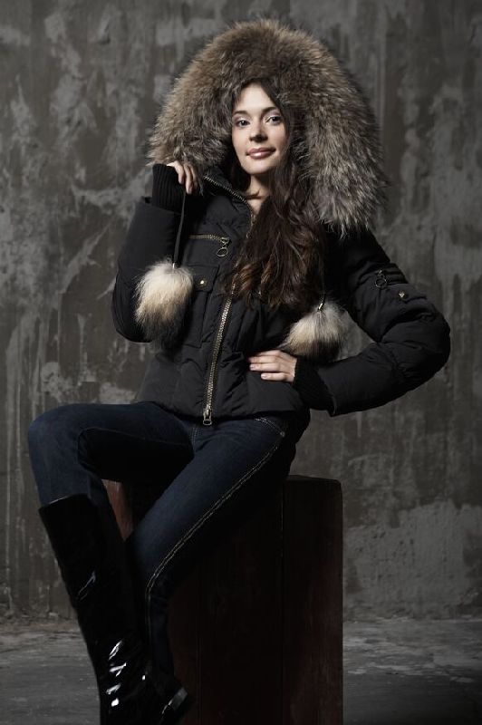 Зимняя куртка с мехом енота черная