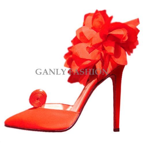 Туфли оранжевые с пряжкой и перьями