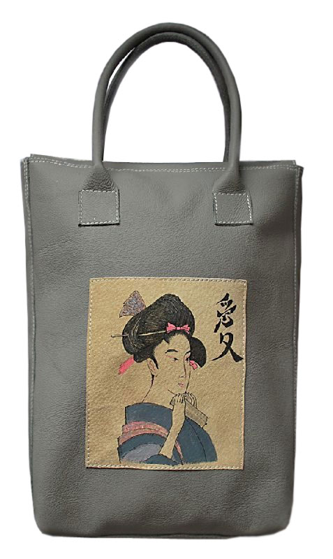 Сумка "Японка" из серой кожи с рисунком