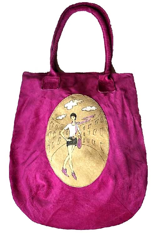 Сумка замшевая цвета фуксия с рисунком "Девушка"