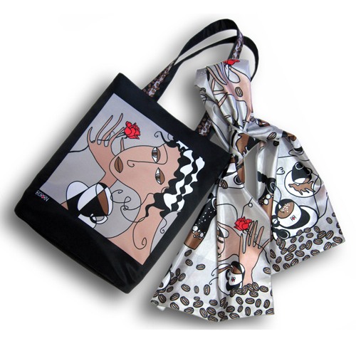 Комплект "Кофейная рапсодия" с розой (сумка+шарф)